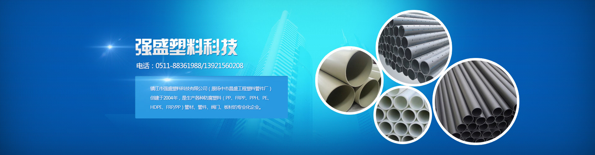 鎮(zhèn)江市強(qiáng)盛塑料科技有限公司(原揚(yáng)中市昌盛工程塑料管件廠)創(chuàng)建于2004年,是生產(chǎn)各種防腐塑料(PP、FRPP、PPH、PE、HDPE、FRP/PP)管材、管件、閥門、板材的專業(yè)化企業(yè)。公司擁有各類先進(jìn)生產(chǎn)設(shè)備,固定資產(chǎn)約3800萬元,可生產(chǎn)管材、管件口徑為Φ15-Φ1200mm,產(chǎn)品規(guī)格齊全。目前產(chǎn)品廣泛適用于醫(yī)藥、食品、冶金、造紙、電力、礦山、城市污水處理、垃圾填埋、輕工紡織等領(lǐng)域,暢銷全國(guó)各省市自治區(qū),遠(yuǎn)銷二十多個(gè)國(guó)家及地區(qū)。